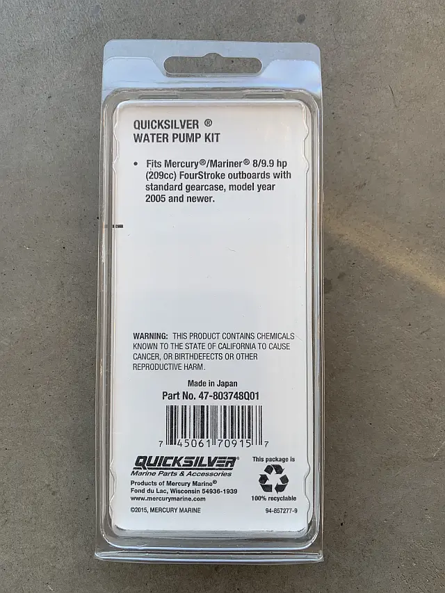 Fits Mercury / Mariner 8/9.9 hp (209cc) FourStroke outboards with standard gearcase,